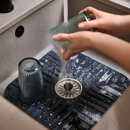 Protegé tus utensilios y tu bacha con este práctico protector diseñado para facilitar el lavado y el secado.