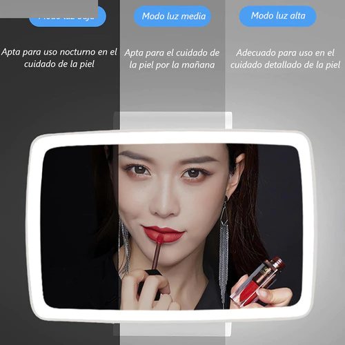 💡 Ideal para maquillarte o retocarte mientras viajás, con 21 luces LED integradas y 3 niveles de brillo: bajo, medio y alto. El sistema táctil te permite ajustar la iluminación fácilmente según la luz ambiente.