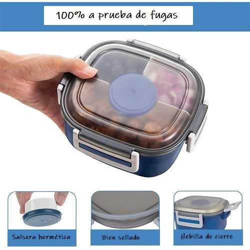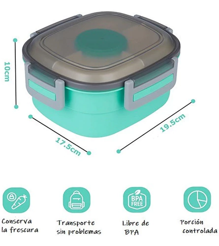 Su formato tipo bowl con divisiones internas removibles te permite llevar comidas completas y equilibradas sin que los sabores se mezclen. Ideal para el trabajo, la facultad o salidas al aire libre.