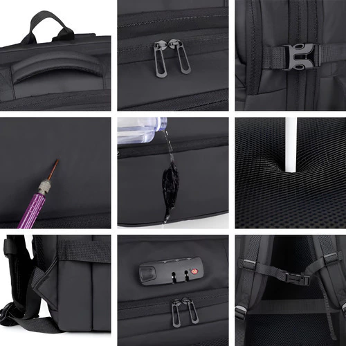 ✅ Múltiples espacios: bolsa principal, frontal con cierre, compartimento trasero para notebook y bolsillo especial para objetos secos/húmedos
