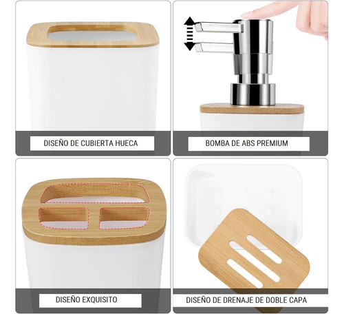Ideal para decorar y organizar tu baño con estilo moderno y natural. Fabricado en plástico resistente combinado con bambú de alta calidad, en colores blanco y negro. Presentación en caja lista para regalo.