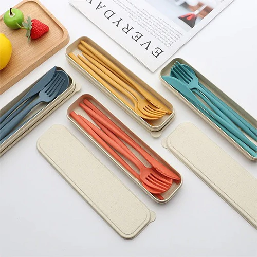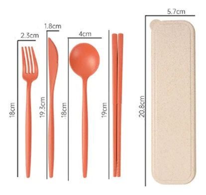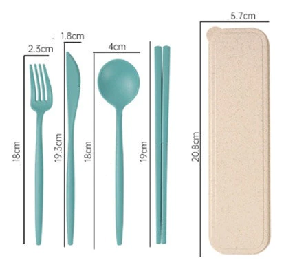 Este set de cubiertos de 4 piezas con estuche es perfecto para tus viandas, picnics, almuerzos en el trabajo o para que los chicos lleven al cole.