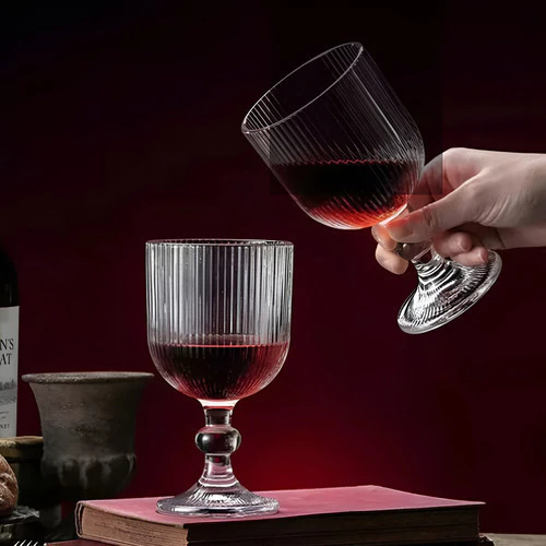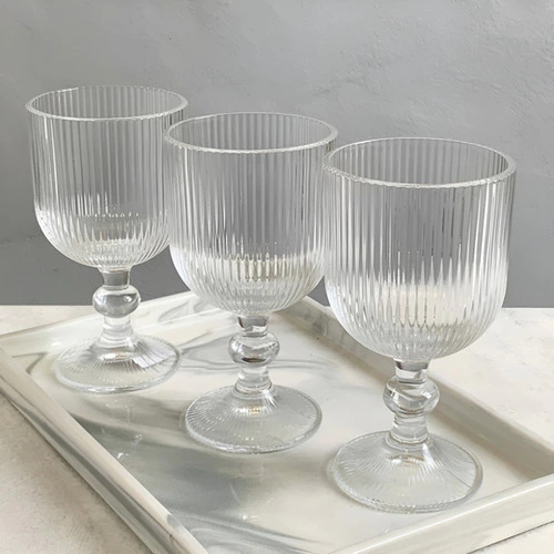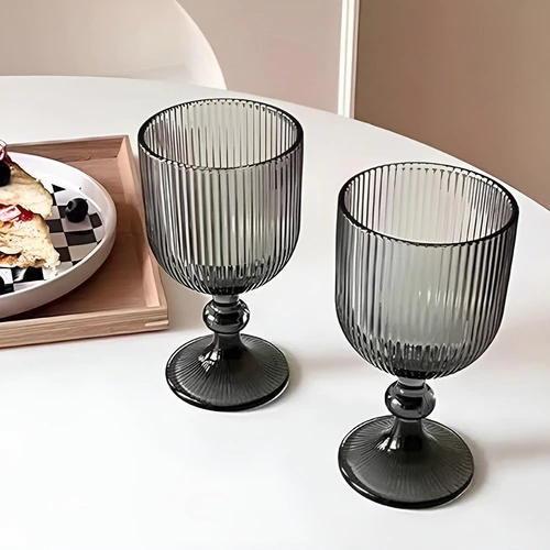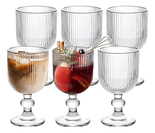 🍷 Set de 6 Copas de Vidrio 390 ml con Relieve de Líneas Verticales