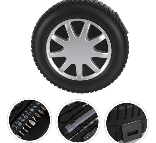 ✔ Caja de almacenamiento con diseño exclusivo en forma de neumático de auto, mantiene las herramientas firmes y organizadas