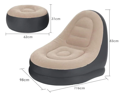 Sillón Inflable Interior y Exterior con Puff + Inflador – PVC Flocked Negro y Beige